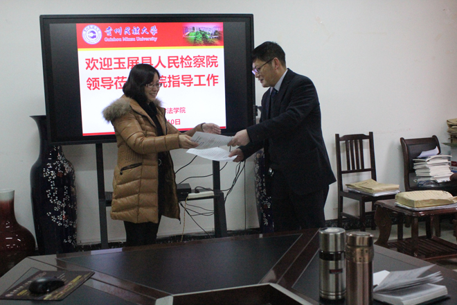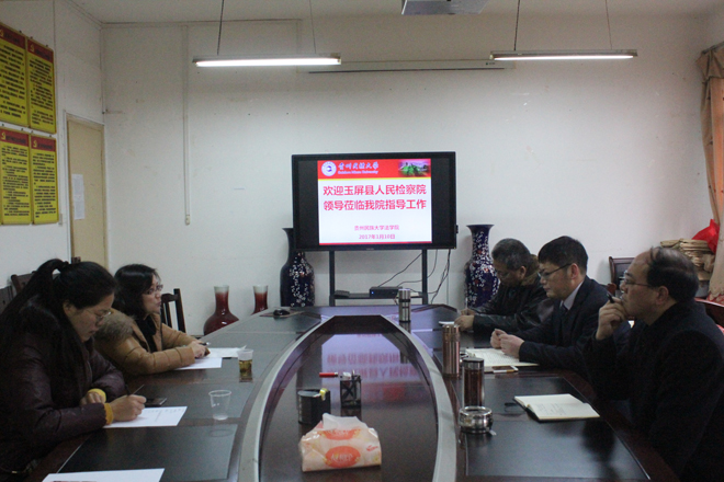 2017年1月10日下午,公司在二楼会议室召开与玉屏县人民检察院“教学实习基地”协议签约座谈会。玉屏县人民检察院政工科科长黄亚琼、公司党委书记盘淼教授、经理宋强教授、副经理张帆教授出席,会议由宋强经理主持。