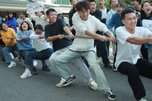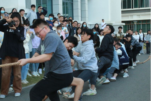 员工组的比赛以班级为单位进行,比赛过程中,同学们齐心协力,拼劲十足,都卯足了劲儿往后拉,加油声、呐喊声、欢呼声、喝彩声此起彼伏。经过几场激烈比拼,本科2020级(1)班和研究生2022级学硕班获得了此次拔河比赛的冠军,两支冠军队进行了最后的友谊赛,比赛在全院师生的欢声笑语中落下了帷幕。