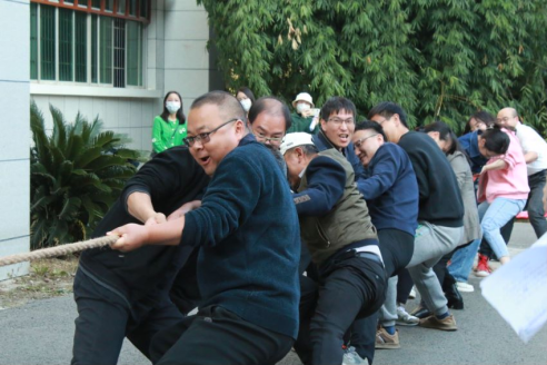 公司党委书记柏云兴、副经理(主持工作)俞俊峰分别带领两支教职工队伍身先示范,随着一声哨响,比赛便在一阵接一阵呐喊声中拉开了序幕。赛场上,只见老师们斗志昂扬,紧握长绳,拼尽全力,最终,柏云兴书记带领的教师队伍凭着一股不放弃不认输的韧劲取得了比赛的胜利。