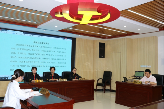 在社区活动室里,宣讲团成员开展了模拟法庭活动,通过还原庭审现场,增强社区居民的是非判断能力和自我约束意识。此次活动打破了以往较为单一的普法教育宣传模式,以寓教于乐的情景互动模式,让观众更加直观地了解司法审判的活动流程、内容及作用。除此之外,于敏同学和杨寒同学还以“与民法典同行,共同守护青春”为主题,为社区居民和青少年讲解了《中华人民共和国民法典》《中华人民共和国未成年人保护法》等相关法律知识。