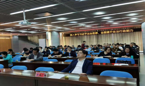 讲座中,傅智文副教授详细讲解习近平法治思想的提出、意义、深刻内涵和主要内容,以及在法治政府建设中贯彻落实习近平法治思想的要求等。