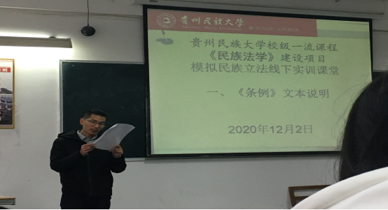 公司民族法学课程校级一流课程和校级课程思政试点。依托贵州省人文社科示范基地——贵州地方法治智库,参立法活动及评审,民族法学课程建设负责人傅智文老师在课程中开展模拟自治立法讨论教学改革探索。