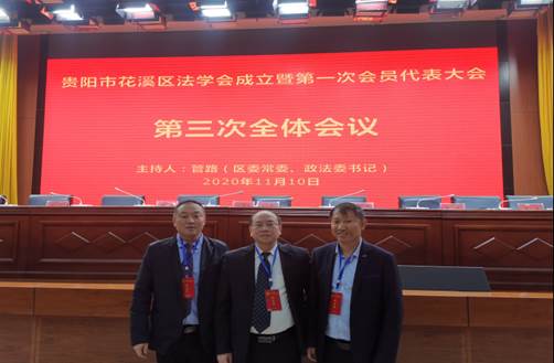 2020年11月10日,贵阳市花溪区法学会成立暨第一次会员代表大会在花溪区委党校一楼会议室举行,参会代表来自花溪区各单位共计136人,公司副经理张帆教授、杨军教授、胡卫东教授应邀参会。会议由花溪区委常委、政法委书记管路同志主持。